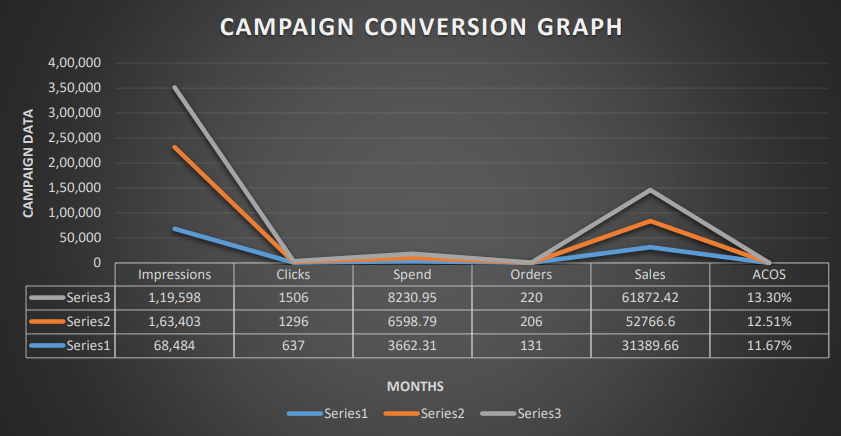 | Sr. No. | 3 Months Record | Impressions | Clicks | Spend | Orders | Sales | ACOS |
