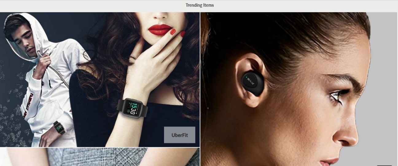 - A home page of the website has a different banners, parallax images, Trending product (Customized feature) and a brief description of its content, clicking on which a visitor would be able to view every type of products offered.
